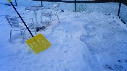 雪かき中のスタッフも汗だく・・・・・(-_-;)